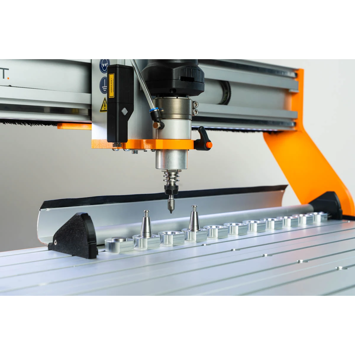 Thanks to the integrated flap mechanism, the cover only opens when needed – namely during tool changes. It then closes again automatically. This ensures greater cleanliness in the magazine area and is a practical upgrade for anyone looking to enhance their STEPCRAFT CNC machine.